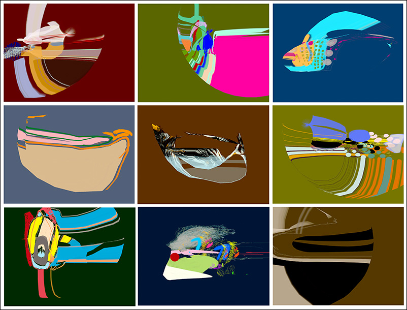 Virtual sculptures generated in real time spin and drift in zero gravity, as clouds of polyrhythmic sound grains surround the listener in a 16 channel 3D audio space. Visuals and spatialized audio coded in Max/Jitter. Click here to read the Musicworks review.