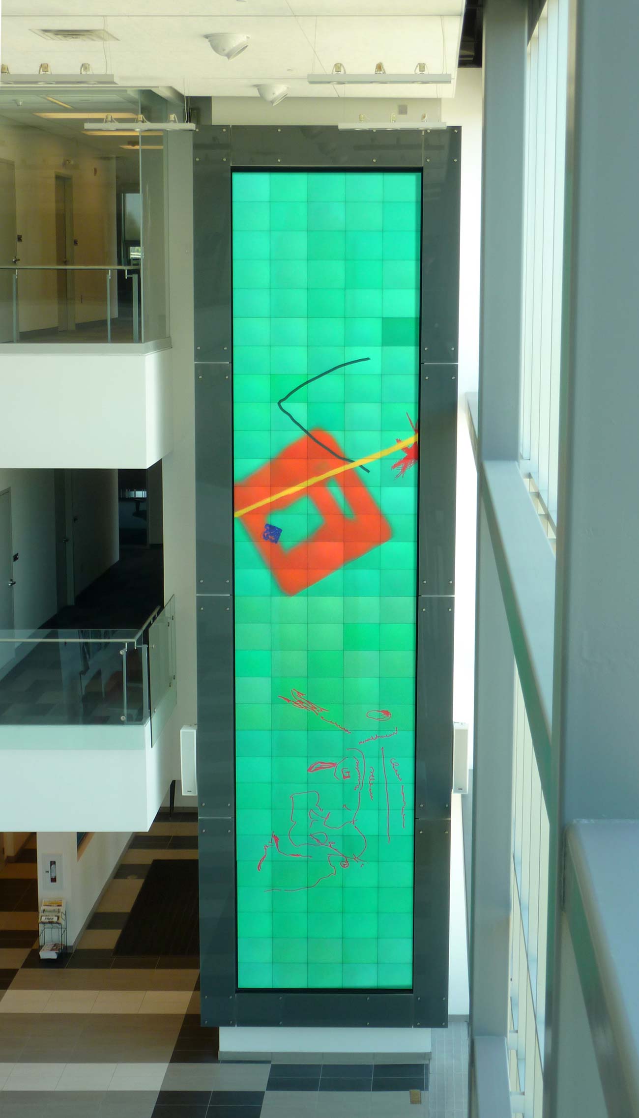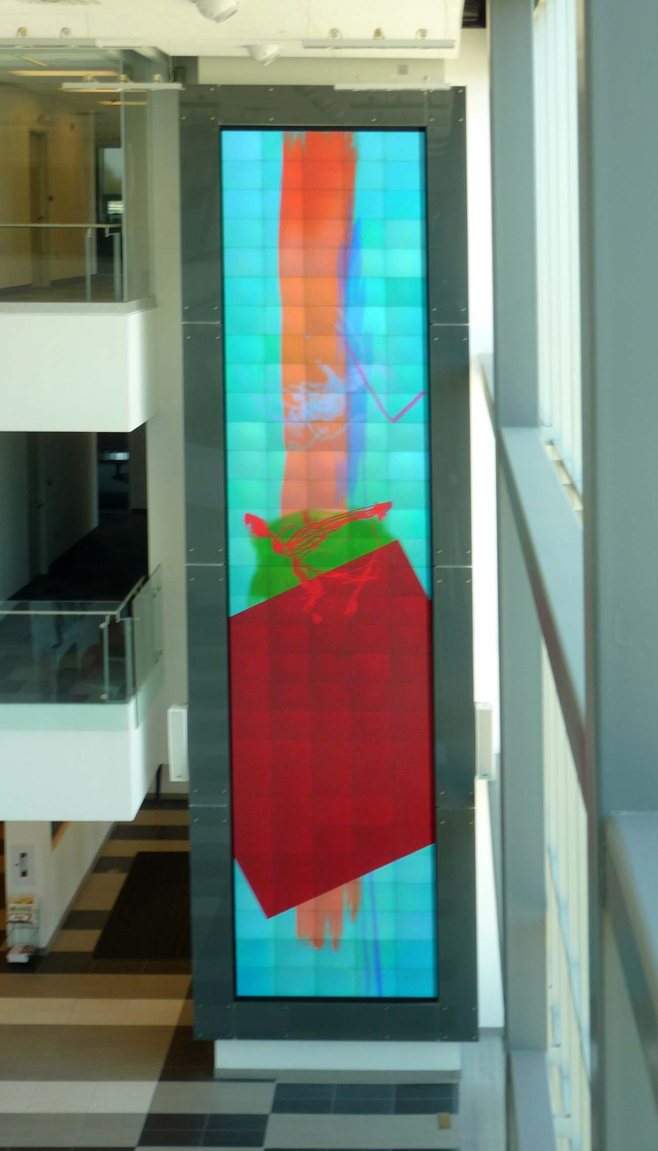 U Waterloo Stratford, 2016 Three-story digital display. Visual transforms generated in real time, coded in Max/Jitter.